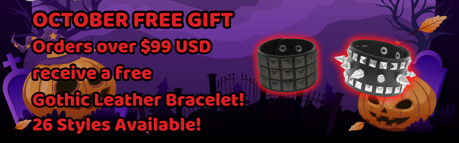 This spooky season, all orders over $99 come with a FREE Gothic Leather Bracelet â with 26 hauntingly stylish designs to match your inner creature of the night. đŠđžïž